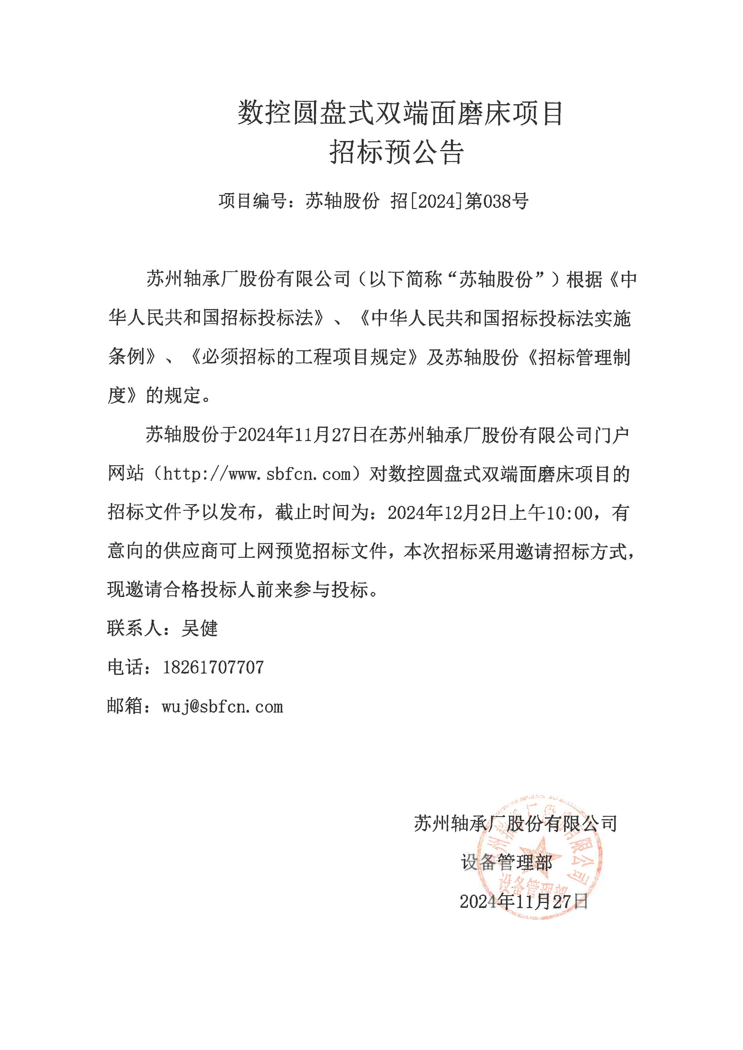 (招標(biāo))數(shù)控圓盤(pán)式雙端面磨床項(xiàng)目招標(biāo)預(yù)公告