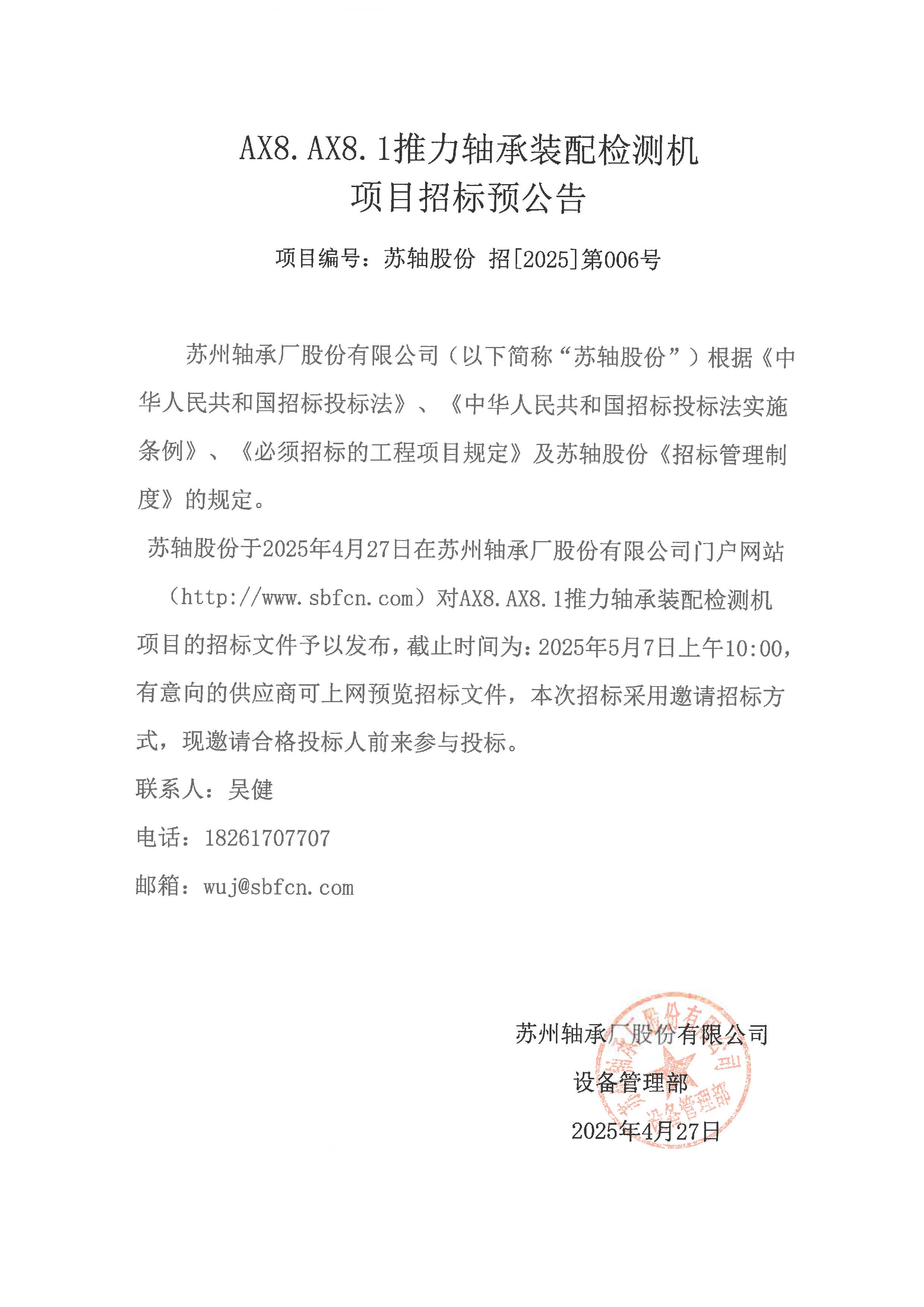(招標(biāo))AX8.AX8.1推力軸承裝配檢測(cè)機(jī)項(xiàng)目招標(biāo)二次公告